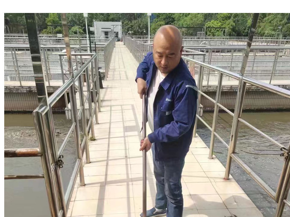 為了實時上傳的6個指標(biāo)能正常穩(wěn)定達(dá)標(biāo),無論天晴下雨,不顧臭味撲鼻,陳軍每隔1-2小時就會對各水池和機(jī)房進(jìn)行巡視,還要對生化池人工格柵清理出的垃圾進(jìn)行打撈;還要巡視查看粗細(xì)格柵是否正常清渣,沉沙池回流泵、刮泥機(jī)、淲池是否正常運行,并根據(jù)水量情況及時調(diào)整風(fēng)機(jī)風(fēng)量大小。尤其是在刮泥機(jī)出現(xiàn)較大故障時,他需要一邊自行處理,一邊請維修班協(xié)助,為了確保盡快恢復(fù)生產(chǎn),他會與大家通宵奮戰(zhàn)。