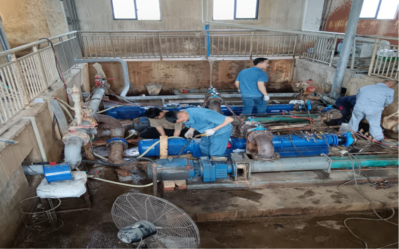 因板框脫水系統(tǒng)的長時(shí)間運(yùn)轉(zhuǎn),進(jìn)泥的高低壓螺桿泵處于極限狀態(tài),出現(xiàn)了工況低下的情形,無形中降低了設(shè)備的使用壽命,增加了藥劑投加成本,該脫水班組先內(nèi)部商量解決方案,然后積極與設(shè)備維修班、另一分廠脫泥班探討該解決方案,最終經(jīng)領(lǐng)導(dǎo)同意后,連夜配合維修班在現(xiàn)有條件下,對(duì)原設(shè)計(jì)技改成一用一備,有效解決在出現(xiàn)進(jìn)泥問題后只能等配件,同時(shí)又為無法滿足生產(chǎn)而“望泥興嘆”的尷尬局面,確保了后續(xù)生產(chǎn)的穩(wěn)定運(yùn)行。
