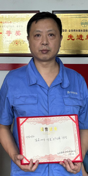 當(dāng)值時(shí)他要將30公斤左右消毒粉加入配藥罐,克服刺鼻、刺眼、衣服被腐蝕等困難是家常便飯;還要將1-2噸除磷劑原液兌入罐中,任務(wù)繁重也毫無(wú)怨言。面對(duì)進(jìn)水水質(zhì)的喜怒無(wú)常,環(huán)保要求極高的情況,他結(jié)合理論知識(shí)與常年積累的經(jīng)驗(yàn),將安全生產(chǎn)牢記心中,做到提前預(yù)判變化,及時(shí)處理異常情況,協(xié)調(diào)員工周密配合,實(shí)現(xiàn)年年達(dá)標(biāo)排放?;萑疽淮未瓮ㄟ^(guò)了央督、省督、市級(jí)相關(guān)等檢查,并獲得各項(xiàng)環(huán)保和安全榮譽(yù),其中就有他的一份功勞。