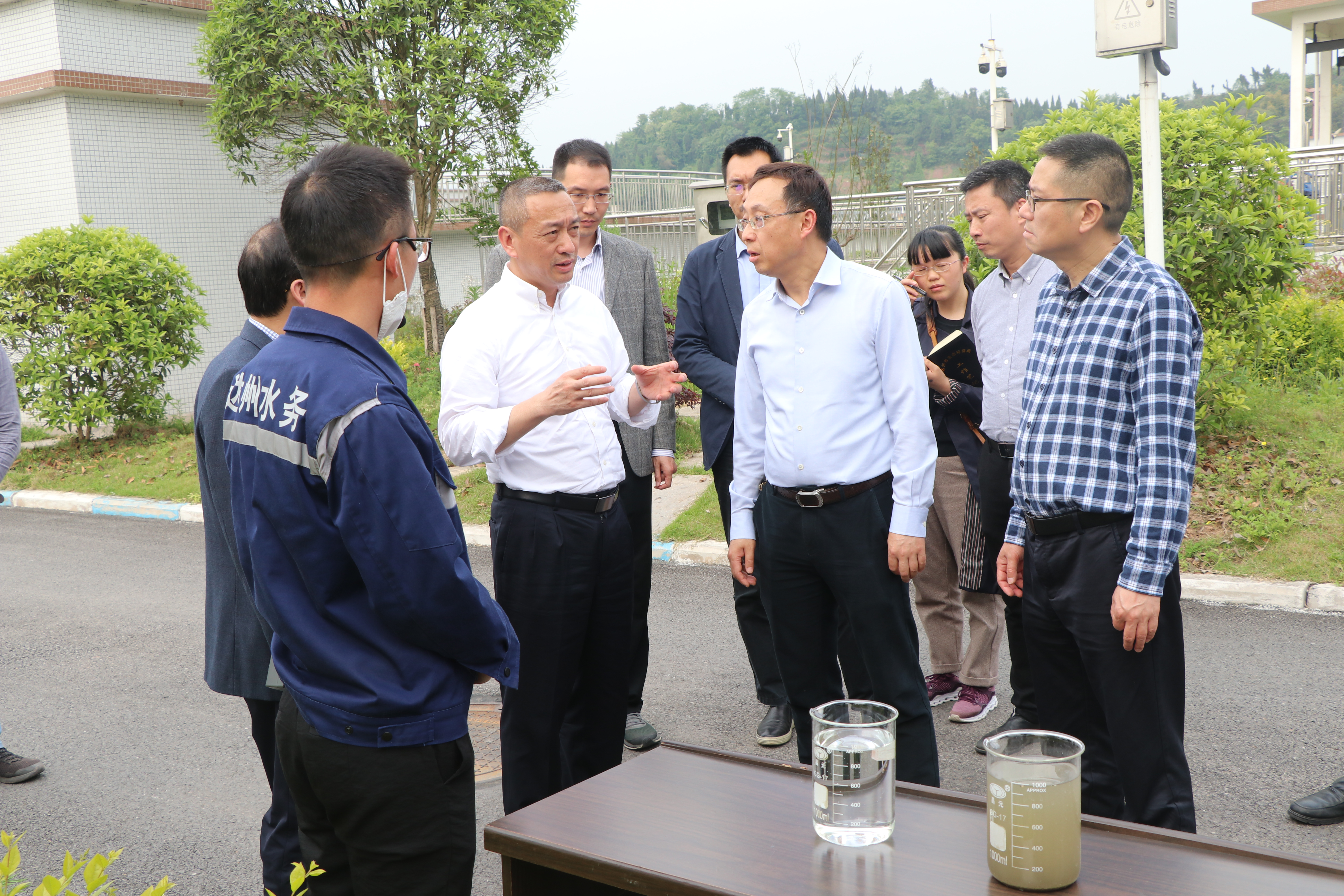 4月17日下午,四川省生態(tài)環(huán)境廳廳長(zhǎng)王波一行在副市長(zhǎng)陳文勝,市生態(tài)環(huán)境局局長(zhǎng)袁勇,集團(tuán)公司董事長(zhǎng)梁浩,總經(jīng)理熊戈亮,副總經(jīng)理、惠泉污水執(zhí)行董事李虹霖等領(lǐng)導(dǎo)的陪同下,深入周家壩污水廠調(diào)研指導(dǎo)。